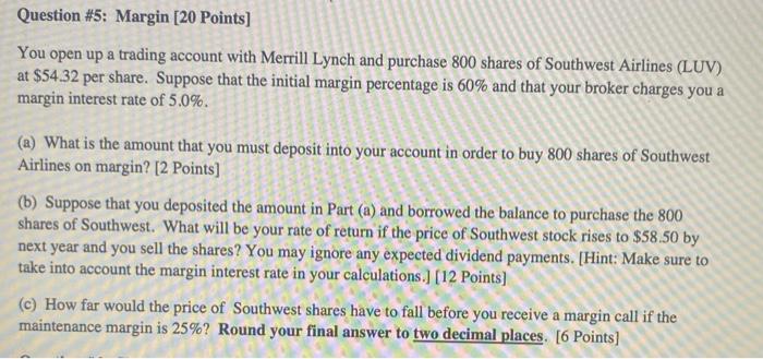 Solved Question 5 Margin 20 Points You Open Up A Trading Chegg Com